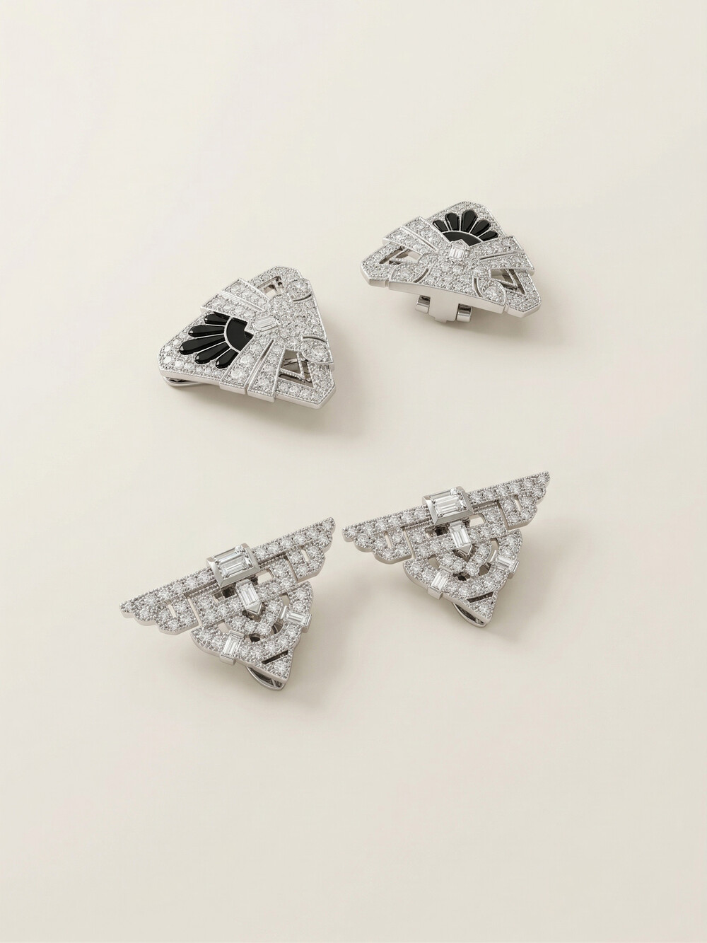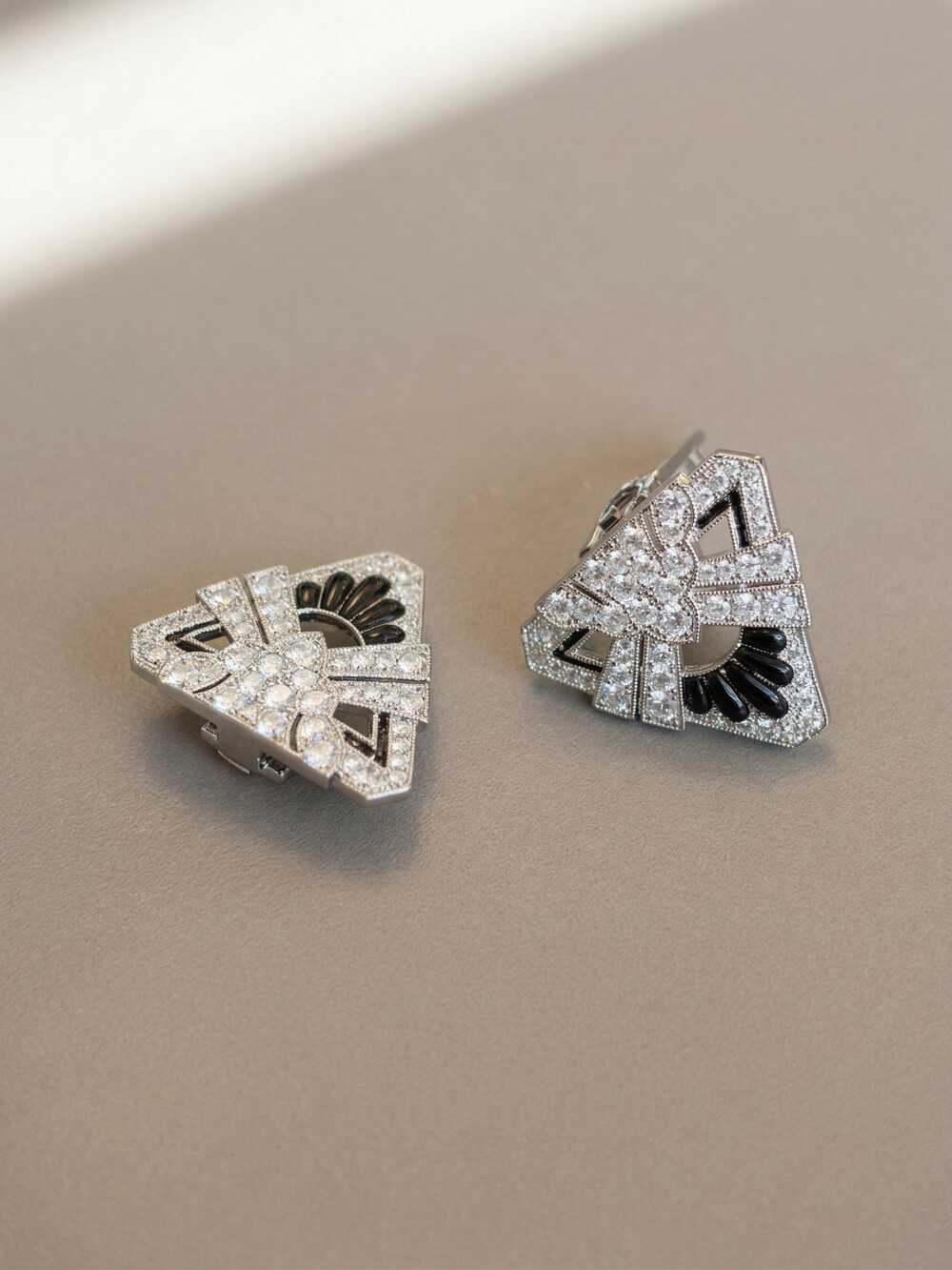 촘촘하게 세팅되고 은은하게 빛나는 클립 브로치입니다.